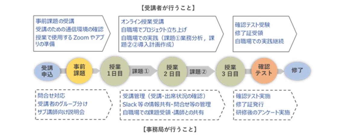 全日程終了後、オンラインでの確認テストに合格することで修了となります 。