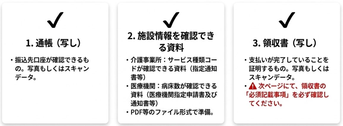 - 通帳の写し(振込先口座情報がわかるもの)